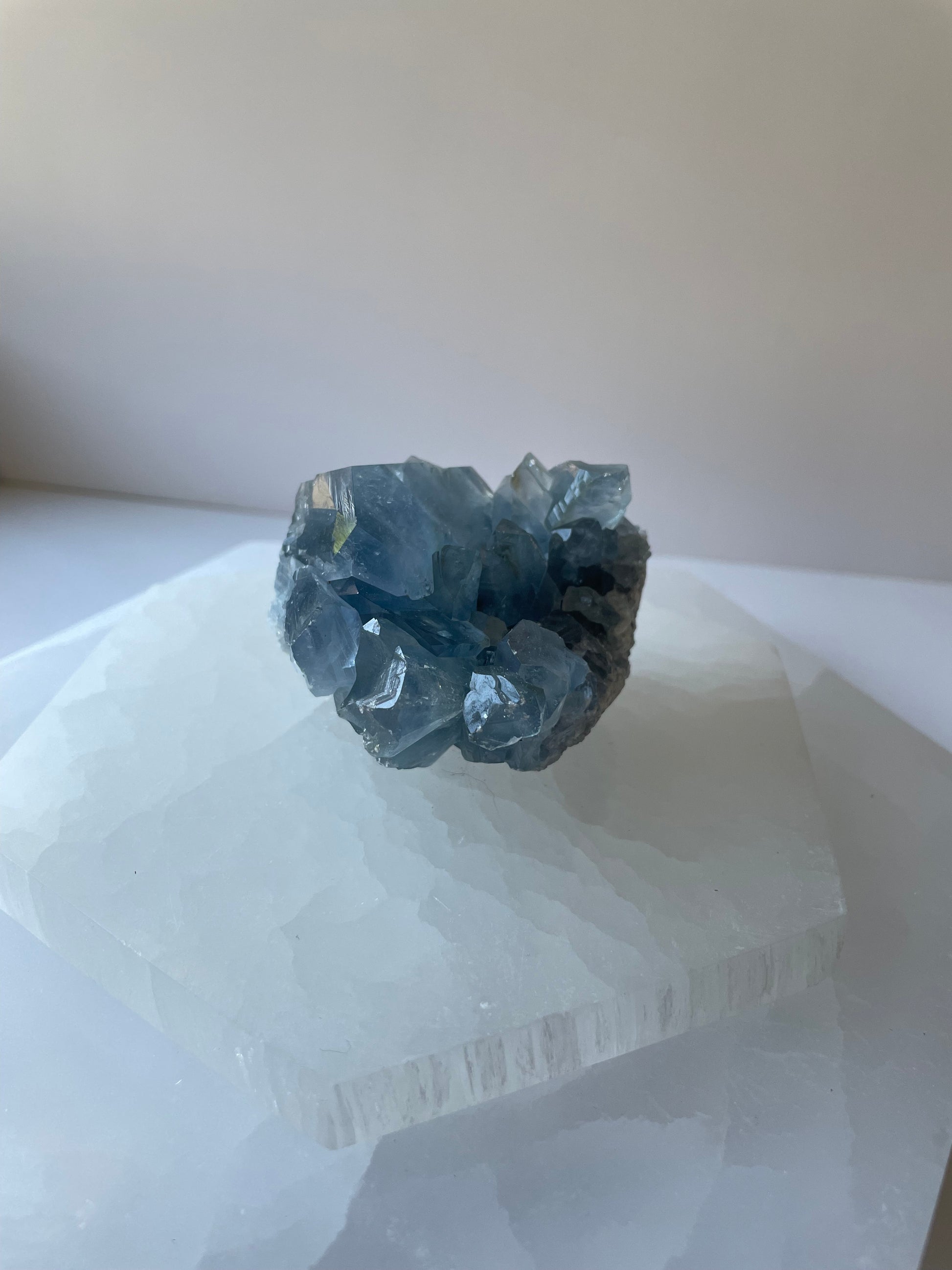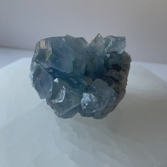 Connect to higher realms with this radiant 3-inch Celestite cluster, sourced from Madagascar. Also known as Celestine, this crystal is linked to the Third Eye Chakra and is believed to enhance divine connection, expand higher consciousness, and deepen mindfulness during meditation.