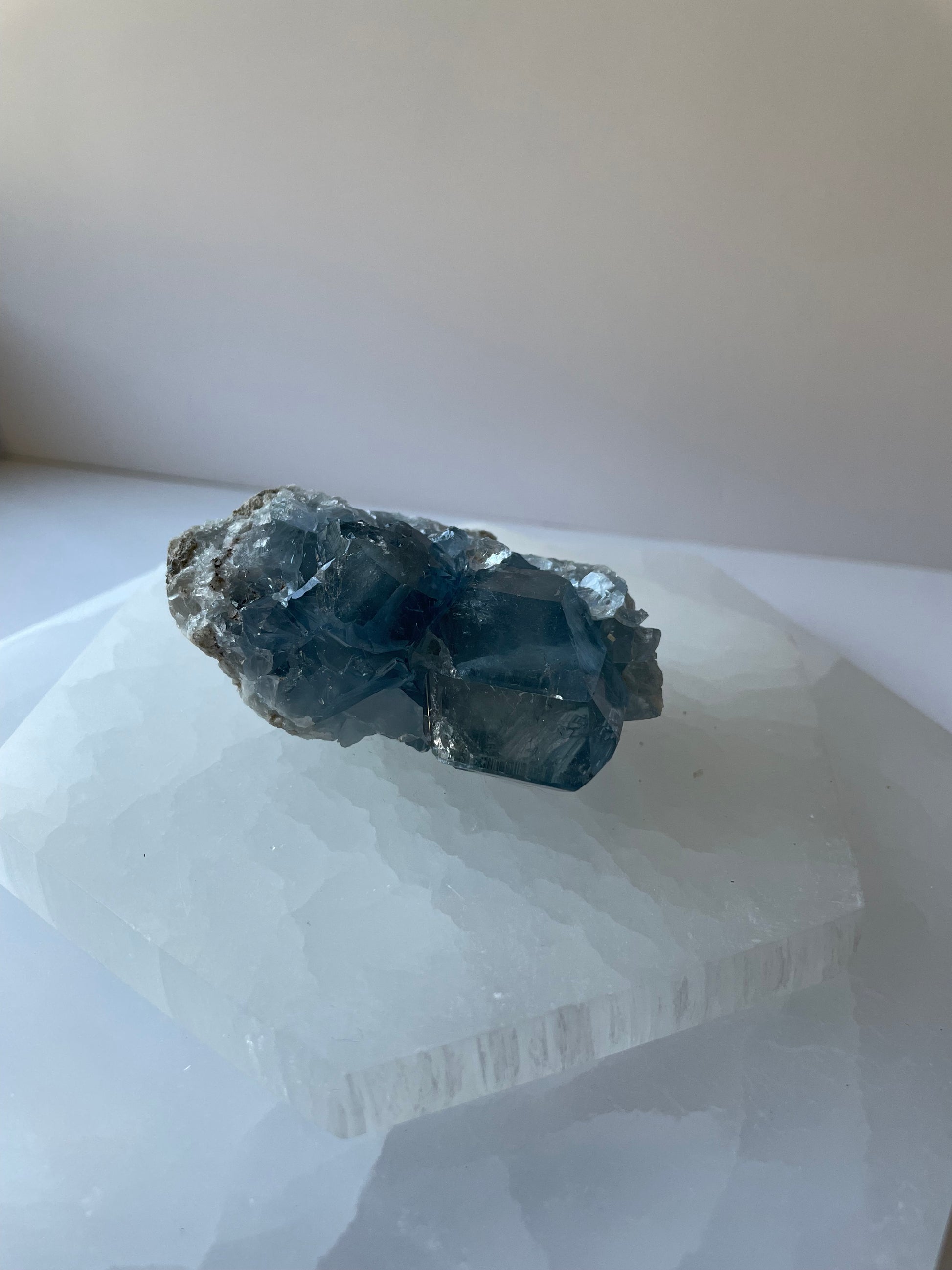 Elevate your meditation practice with this stunning 3-inch Celestite cluster, sourced from Madagascar. Also known as Celestine, this crystal resonates with the Third Eye Chakra, helping to deepen understanding, expand higher consciousness, and enhance mindfulness, especially during spiritual work and meditation.