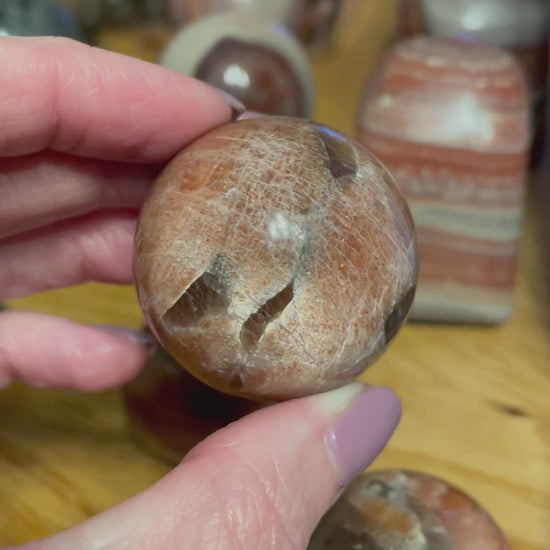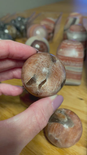 Diea's Dish – This stone pairs sunstone with peach moonstone, but it is of such a color that it gives off more of a peach making it unique.  Pro-tip, take it out into the sun and watch it glitter and flash when you get just the right angle. Absolutely stunning.